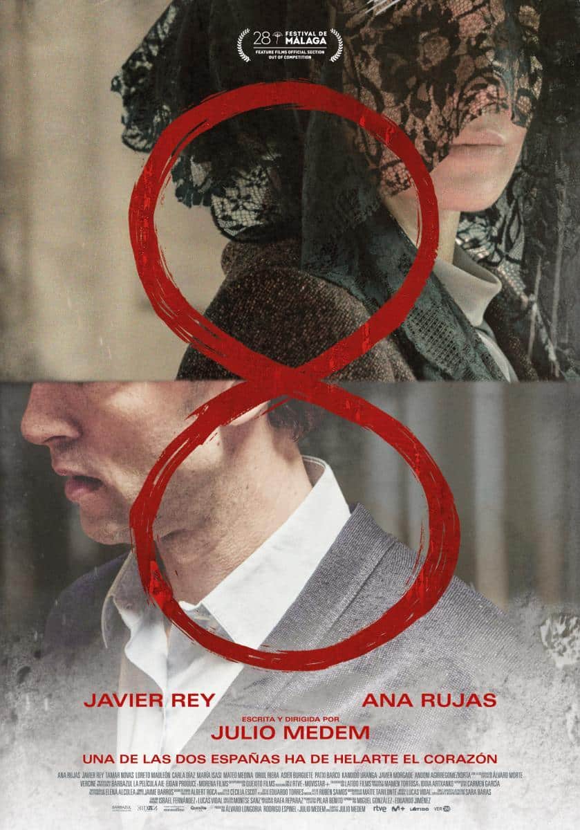 8 cuenta los 90 años de vida de dos personajes, Octavio y Adela, a través de ocho capítulos que recorren la historia de España desde 1931 a 2021. Como en Los amantes del círculo polar, es una historia sobre dos personas cuyas vidas están conectadas, pero de forma paralela, con pocos momentos de contacto. Al mismo tiempo, Medem ofrece un retrato del espíritu de polarización que afecta a la sociedad española.